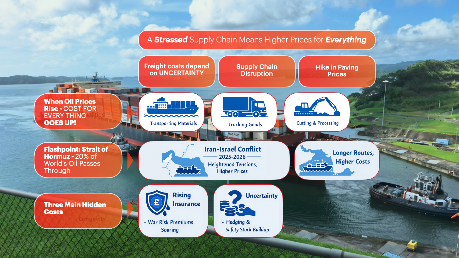 We want to be clear: the Iran-Israel conflict is not the only factor driving paving prices, and it hasn’t caused costs to double or triple. But its contribution is real and traceable.