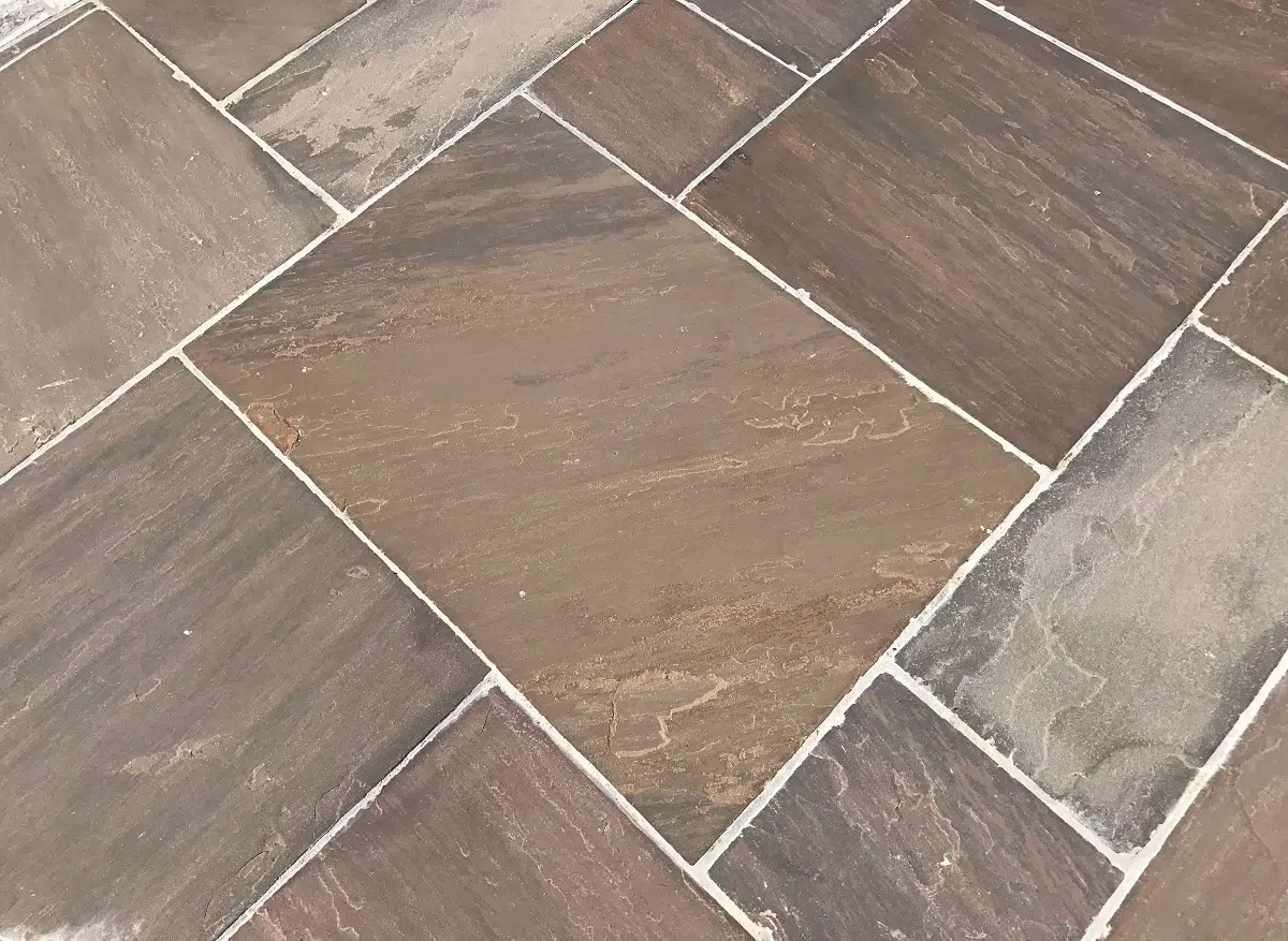 Autumn Brown is a traditional sandstone with a riven surface and irregular interesting edges. With a warm color tone, this product is attractive in any space but lends itself well to a rural scene. Due to its durability, texture and brown tone color, it is a perfect match to your red brick walls. Quite often, the brown tones are further enhanced by purplish shadings. It goes well with older constructions and is a preferred choice for those who like a more reddish color of Autumn Brown Natural Sandstone as compared to Raj Green. Its earthy color look has an integrating effect with nature. Hard wearing and requiring minimum maintenance, the cleft surface of each stone adds character to a large area that might otherwise look bland. Autumn Brown is also available in a Finestone project pack, having variable thickness ranging between 18-25 mm, offering a more viable option for keener budgets.